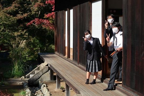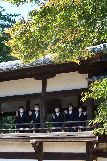 縁側でニッコリ 今年の紅葉は例年より遅いそうです…