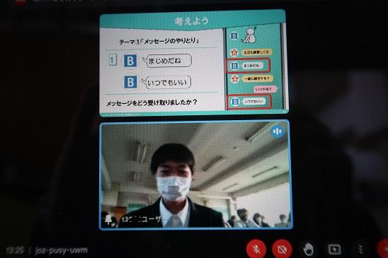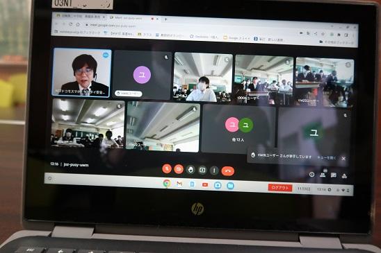 また続けて行われたセーフティ教室ではオンラインで携帯会社の方を講師として携帯スマホの使い方についての安全教室を行い、保護者の方には図書室で参加していただきました。