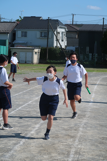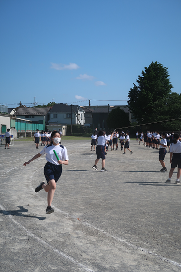 クラスごとに種目を決めて練習 こちらのクラスは担任の指揮で全員リレー