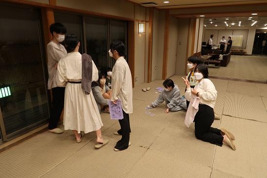 宿舎に到着後、1時間から30分ほど休んだ後は大江能楽堂へ古典芸能である能と狂言を鑑賞しに出かけました。その後に夕食、自由時間と盛りだくさんでしたが充実した一日になったようです。