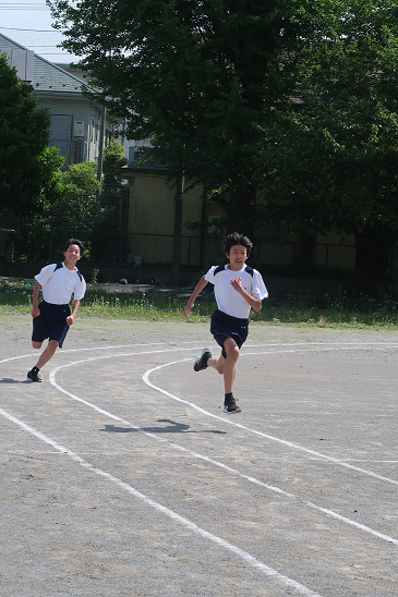 こちらは50メートル走のタイム測定 2年生