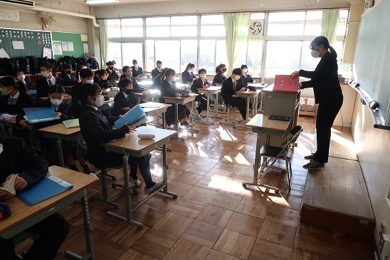 新型コロナウイルスの感染症対策ため学校の様々な取組が十分できなかった令和2年ですが、とりあえず一区切りとなる2学期の終業式とそれに引き続く通知表等の配布がありました。明日からの冬休みは感染予防に努めながらの冬休みとなります。部活動等も冬休みは感染に配慮して行うこともないので、1月7日までしばらくのお休みとなります。
