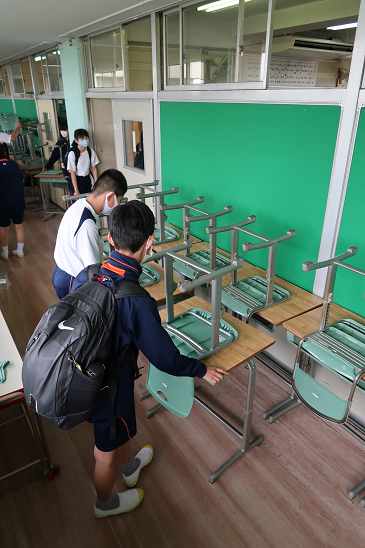 清掃活動のため机と椅子を廊下へ