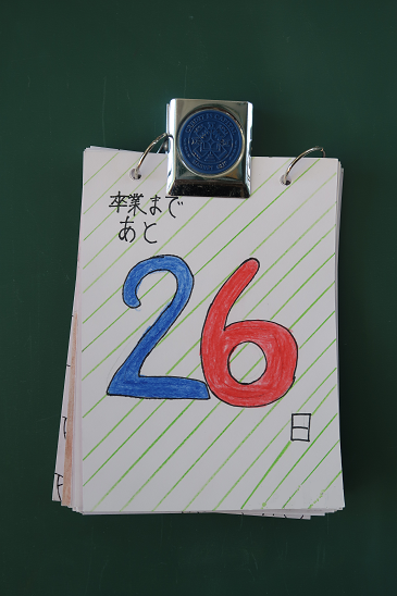 1年生と3年生の教室の一部に日めくりカレンダーが掲示されていました。この日めくりカレンダーはそのクラスで過ごす時間をカウントダウンするものです。2月の初旬のタイミングでの掲示は、そのクラスの一人一人が思いを込めて作成するため、残りの日数とクラスの人数が一致するこの時期となっています。