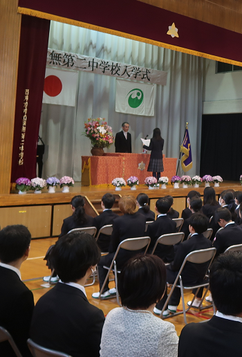 生憎の天候となりましたが、新しく127名の新入生を迎えて入学式を実施しました。今回はコロナ禍前に戻って在校生と一緒の入学式、来賓も多く参加していただいた入学式となりました。入学式、新入生の様子をご紹介いたします。