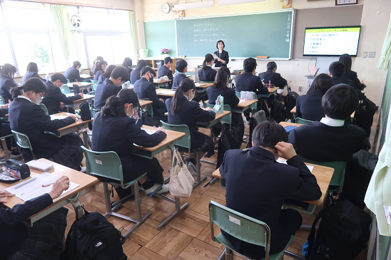 1年生教室 担任の先生の言葉が黒板に…