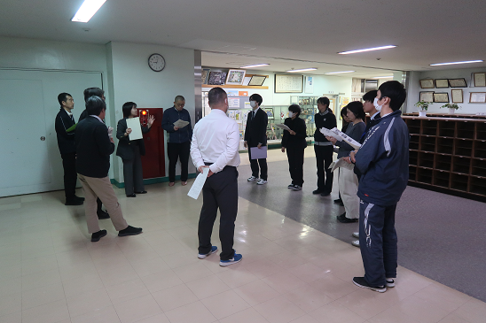 火災を想定した非常ベル、ポンプの操作、停止の研修