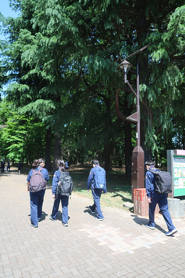 入学から1か月、1年生も中学校生活に馴染んできたところですが、集団として仲良くなったり、協力したりする1年生になるように小金井公園への校外学習を行いました。班で考えながら歩いて小金井公園へ行き、公園内の江戸東京たてもの園を見学する様子(前半)をご紹介します。