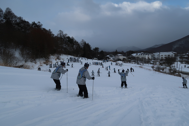 初日の菅平高原スキー場の気温はマイナス6度。寒さに負けず、12の班に分かれて実習が始まりました。初めて履くスキー板、何度も練習して少しずつ上達していく生徒たちの様子をご紹介いたします。