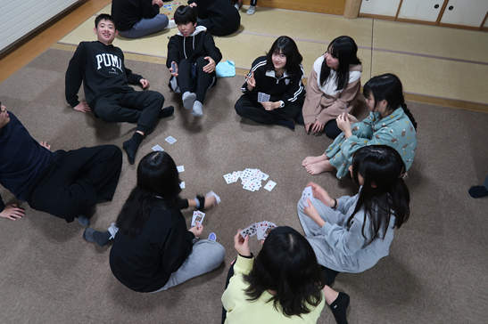 宿舎に入ってお茶をもらいます。丁寧に差し出す係の生徒たち