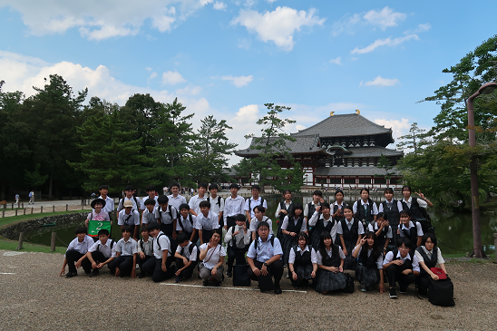 台風の影響で一泊二日となった修学旅行ですが、変更になった内容でも生徒たちは楽しみにしていた旅行が始まるのでわくわくした気持ちでスタートしました。当初の予定と違うところはありますが、みんなで行く古都の旅の始まりです…