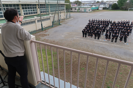3年生の卒業アルバムの最初の見開きページには学年の集合写真を毎年掲載しています。その撮影の様子をご紹介いたします。