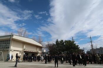 卒業式が終わり、在校生、保護者の
