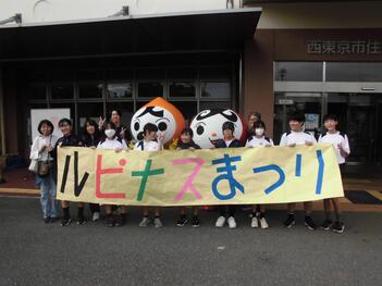 地域のルピナス祭りにて、二中生がボランティアとして参加しました。この着ぐるみの中でも二中生が活躍していました。
