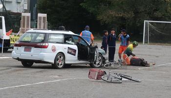 これは事故現場の再現。二中の代表