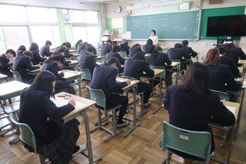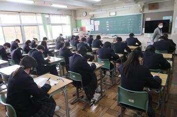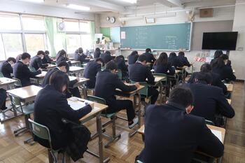 本日は期末考査2日目です。生徒の
