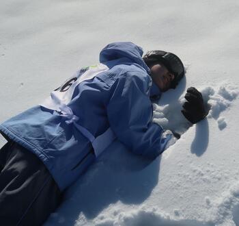 こちらは転倒の練習。山側にお尻を