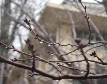 二中の桜のつぼみもまだ小さいで