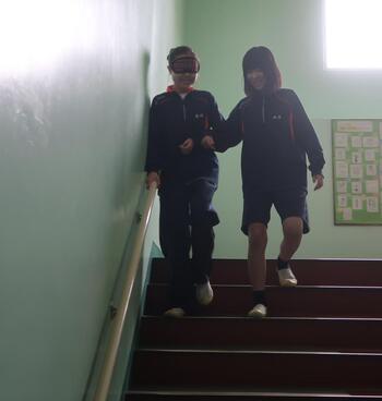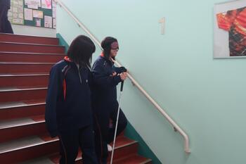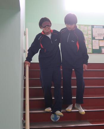 生徒たちは、アイマスクをして、白