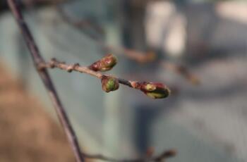 東側の桜はまだ緑のつぼみの状態で