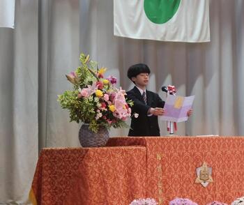 歓迎の言葉。在校生代表として、二