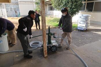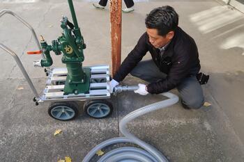 ポンプとホースをつなぎます。