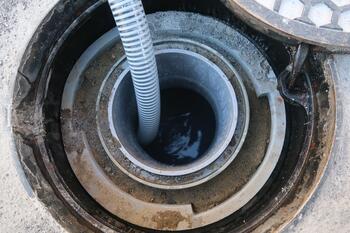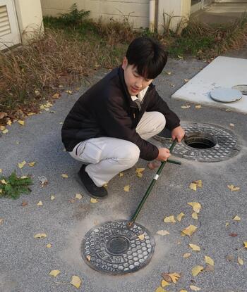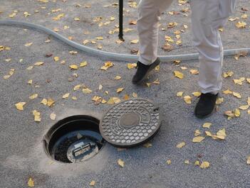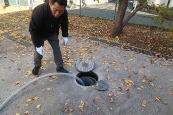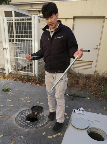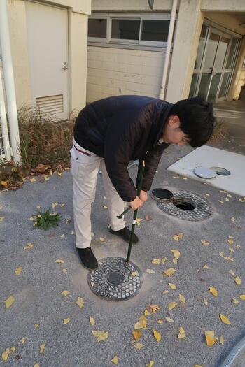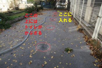 奥のマンホールにホースを入れたら、