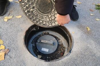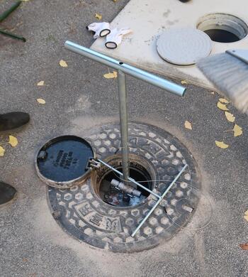 一番奥側のマンホールを開け、ここ