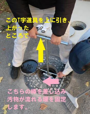 そして、てこの原理を使ってマンホ