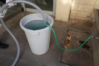 水を排水溝に入れるためのホースも