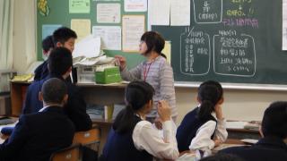 令和元年11月8日(金曜日)、1年生を対象に認知症サポーター養成講座を実施いたしました。西原町地域包括支援センターの職員が講師として来校しました。講師の説明や地域ボランティアの方とのロールプレイを通して、認知症への理解を深めるとともに思いやりのある態度についてグループで話し合いをしました。終了時に、オレンジリングが配布されました。