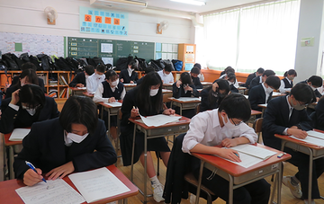 1学期の中間考査が行われ、1日目の本日は国語、社会、数学の教科が行われました。