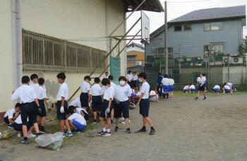 1回目の全体練習後、生徒会が主催した草取り作業を行いました。運動会会場を整備しようと、どの生徒も頑張っていました。