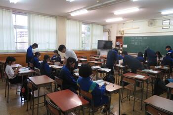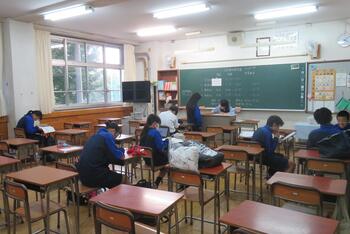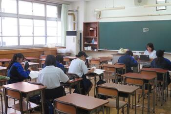 今日も生徒たちは、普段どおり落ち着いて学習に励んでいました。放課後は、質問教室・自習教室に参加し、来週の中間考査に向けて準備する生徒たちでにぎわっていました。