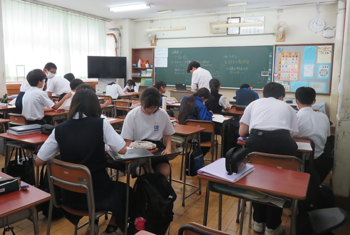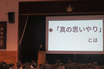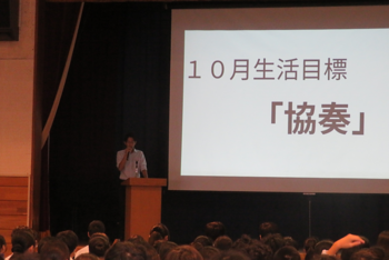 全校朝会終了後、生活指導主任の先生より、10月の生活目標「協奏」等について話がありました。