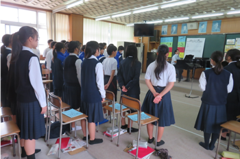 今日から10月31日(金曜日)まで、教育実習生が3名本校で実習を開始しました。朝、オンラインで校長より全校生徒に向けて教育実習が始まったことを伝え、実習生にあいさつしてもらいました。