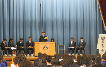 先日の生徒会役員選挙で決まった新役員が主催し、各委員会の提案について質疑・応答を経て全議案が承認されました。