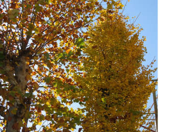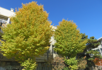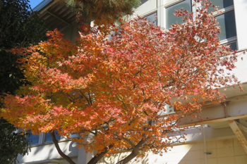 すっきりとした青空に、木々の紅葉が映えてとてもきれいです。