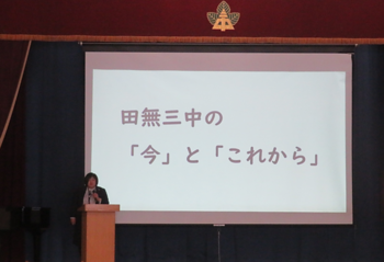 校長先生からは、「三中の今とこれから」というテーマで話がありました。