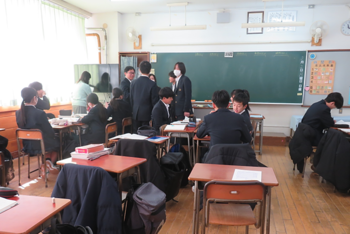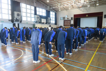 全校朝会終了後、生活指導主任の先生から、1月の生活目標「丁寧」について話がありました。