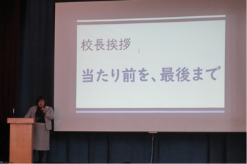 校長先生からは、「当たり前を、最後まで」というタイトルで話をされました。