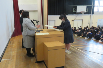 最後に生徒表彰があり、表彰者に多くの拍手を浴びました。