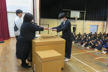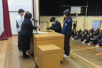 生徒朝会終了後、生徒表彰が行われ、以下の生徒たちが表彰され、多くの拍手を受けました。