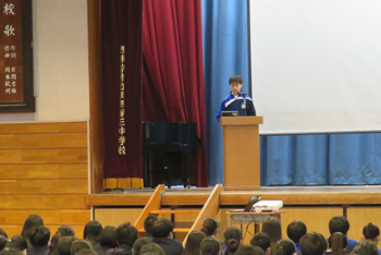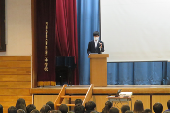 本日、3学期に入り2回目の生徒朝会が開催されました。