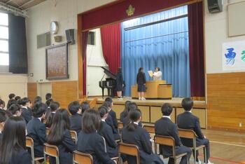今日で令和7年度の全課程を修了しました。1年間の総まとめということで、より一層引き締まった様子の生徒たちの姿が印象的でした。これからの三中の伝統を引き継ぐ皆さんが活躍することを期待しています。