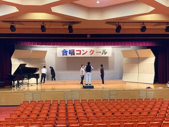 明日の合唱コンクールに向けて、本日の午後、文華女子高等学校で会場準備を行いました。