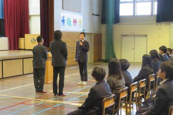 2年生対象に、八王子ダルクの方をお呼びして薬物乱用防止教室を行いました。薬物依存から立ち直った当事者の方から、人と関わりながら活動する経験を積んでいくこと、目標をもって生活していくことなどが、防止につながることになるとのお話がありました。
