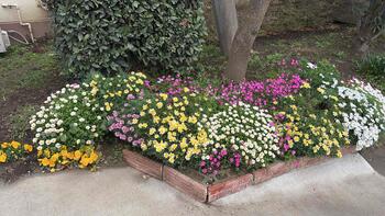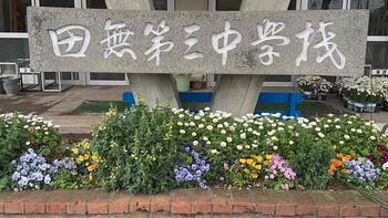 今年度がスタートしました。三中の校門の桜が舞い散り始め、玄関は花びらのジュータンです。校庭側の花壇は、チューリップ、菜の花、ネモフィラが咲き始め、生徒の皆さんを迎える準備をしています。いよいよ6日は令和8年度の始業式です。新たな目標を胸に登校してください。