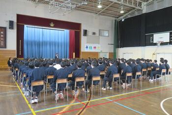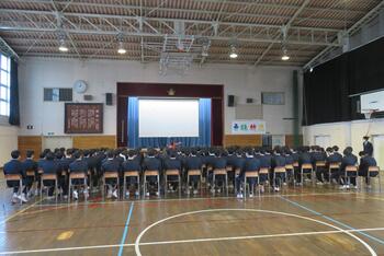 今日は、各学年がそれぞれ学年集会を行っていました。よりよい学年団を築いていくことを期待しています。