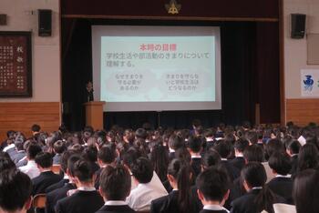 今日は、生活のきまりや部活動のきまりについて考える全校道徳を行いました。「中学生にふさわしい姿」について自分の考えをまとめ、これからの生活について見つめなおす機会となりました。